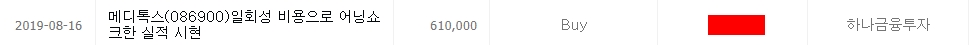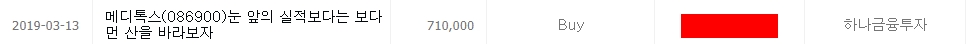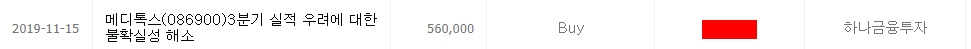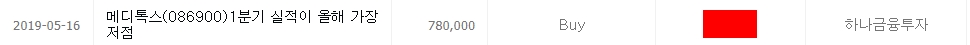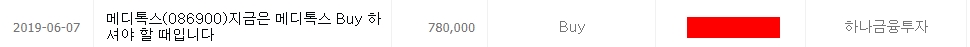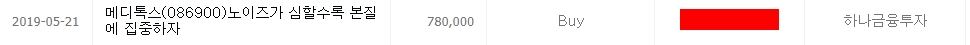 19년 7월 10일, 메디톡스는 허가 전 미검증 약품을 불법으로 유통했다는 뉴스가 나옵니다. 그럼에도 이것은 단순히 시장의 노이즈이고, 아직 결과는 나오지 않았다는 이유로 계속해서 매수 추천을 합니다.