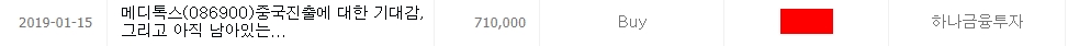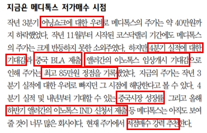 그럼에도 애널리스트는 ① 정식적인 중국 시장 진출 가능성 ② 이노톡스 임상 개시 가능성에 대한 기대감으로 저점 매수를 강력 추천했습니다.