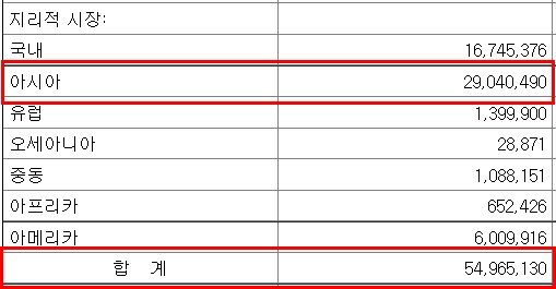 그리고 중국 매출 비중에 대한 정확한 표기는 없으나, 아시아 매출 비중이 50% 정도 되는 것을 공시를 통해 확인할 수 있는데, 이를 통해 중국 의존도가 꽤 높았다는 것을 유추할 수 있었을 겁니다.