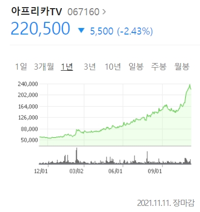 위메이드와 아프리카TV도 NFT라는 테마가 붙으며 미친 듯이 상승하고 있습니다. 컴투스는 블록체인 테마가 붙어 폭등했고, 펄어비스도 메타버스 관련주로 연일 폭등하고 있는 것처럼... 확실히 메타버스 테마가 핫하긴 하나 봅니다.