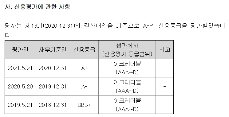 그 외에 설립일자나 본사의 정보나 신용등급을 확인할 수 있습니다.