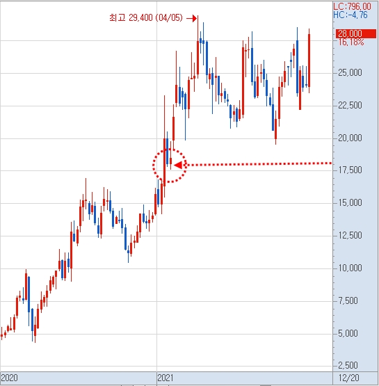 18,000원 밑으로 가면 사세요. 조정올 것 같은데 좋은 기업이에요. 잘 모르겠으면 공부해보세요.