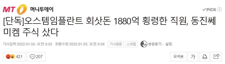 기업 기술력 자체의 문제는 아니기도 하고, 횡령한 직원이 정말 말도 안 되는 방법으로 횡령을 했고 다음에 이런 문제가 발생하지 않을 거라고 믿는 누군가는 추가 매수의 기회로 활용할 수는 있겠으나... 단기적으로는 쉽지 않은 상황임은 분명한 것 같습니다.