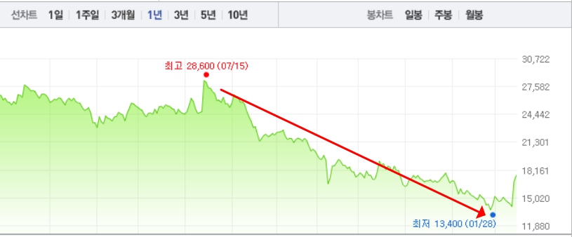 고점 대비 50%가 넘게 폭락하는 동안 제가 할 수 있는 건 공부 & 분할 매수 & 약간의 기도였습니다.