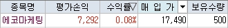 그리고 저를 가장 아프게 했던 종목은 제 블로그에 자주 소개했던 '에코마케팅'입니다.