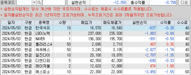 여러 종목을 한 번에 매매하려다 한국석유는 실수로 너무 일찍 팔았는데