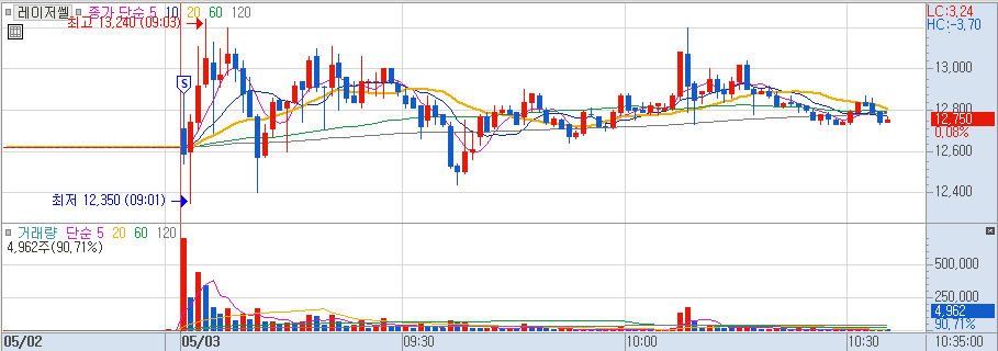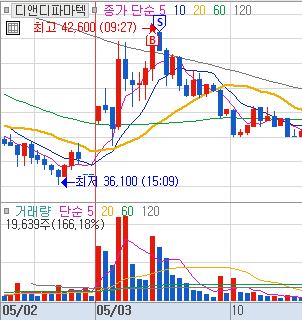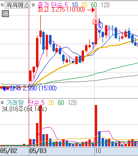 1) 강력한 급등 (40분 만에 개미 털기도 없이 상한가)