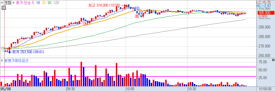 매도 후에 20분선 깨지고 프로그램이 계속 사길래 다시 따라 샀다가