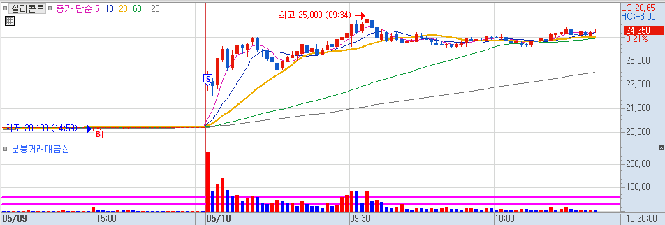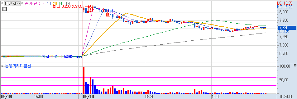 재료 살아있고 장 괜찮으면 다음에는 20분선 음봉 마감할 때까지 가져가 보자.