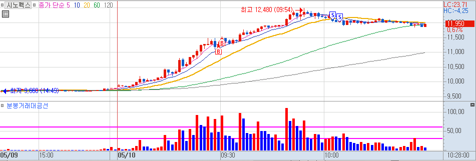 그러다 10분선 터치하면서 프로그램 매수 들어오길래 "취금이니!" 하면서 매수함.