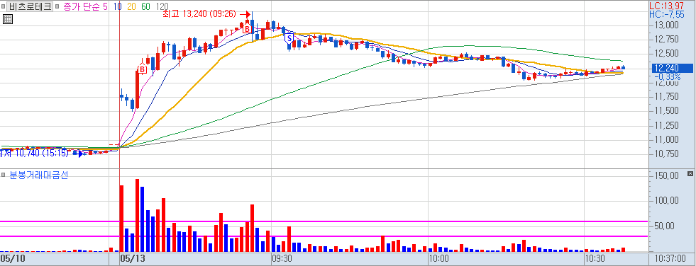 이후 큰 위기 없이 상한가까지 가길래 절반 매도함.