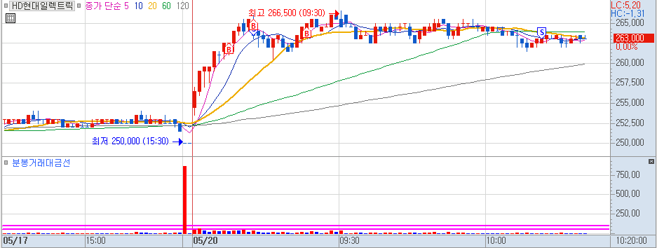 그리고 20분봉과 이격도가 많이 떨어진 종목을 매매할 때는 5분봉, 10분봉 이탈 기준으로 손절점을 잡으면 좋을 것 같음.
