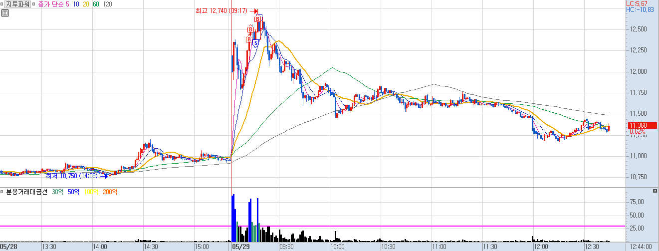 장 초반에 50억 이상 거래대금 빵빵 터지던 종목...