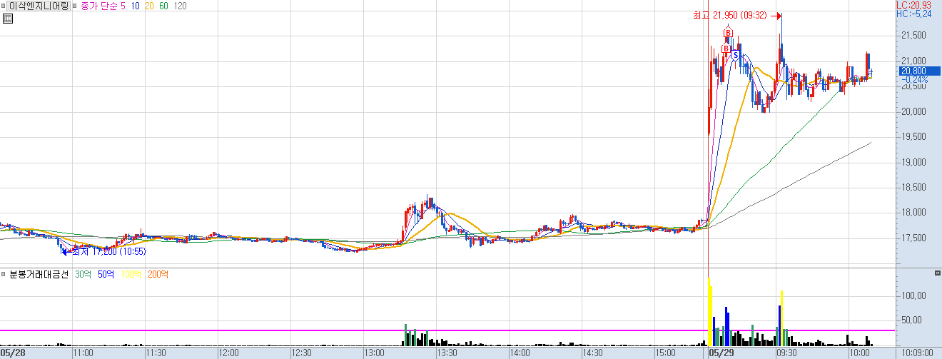 시장이 이상한 흐름이면 보통 신규 상장주나 스팩주가 날뛰는데 9시 5분쯤 매수 타점이 있었는데 내가 볼 수 있었을까? 싶음.