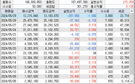 | 240524 단타 매매 일지 22일차 (종목이 너무 많다.. 뇌동인데 수익 뇌동) (1) | 2024.05.24 |