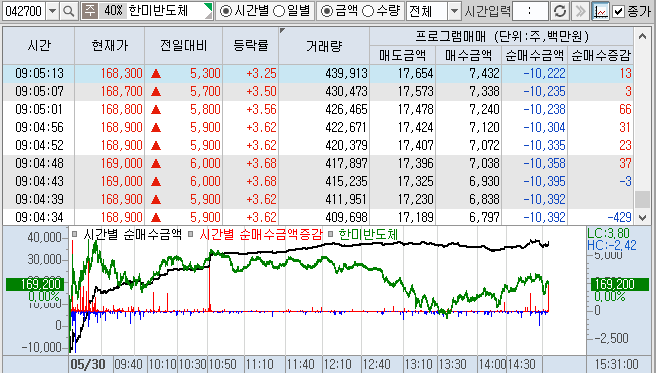 얘도 프로그램 매수 + 외인 매수 + 기관 매수로 상한가 뚫고 마감하길래 종가 베팅으로 넘어갔고