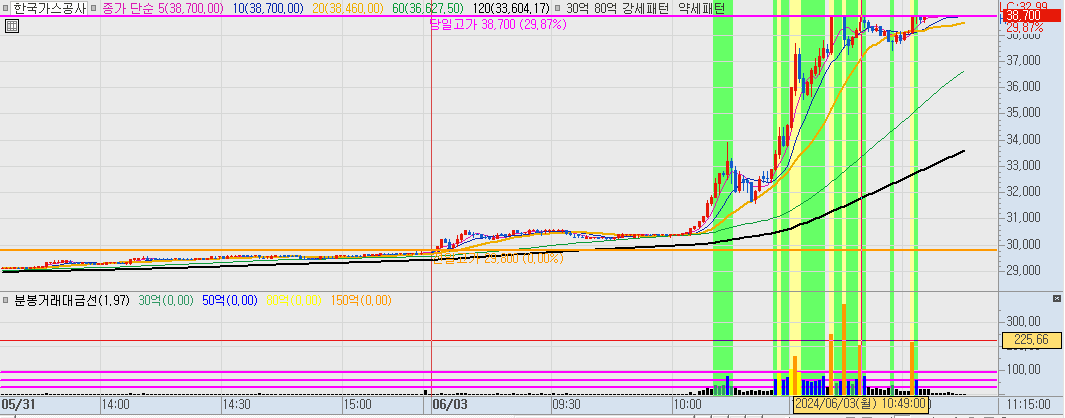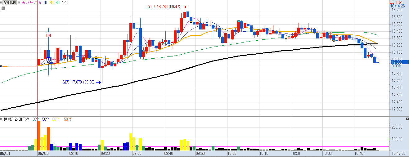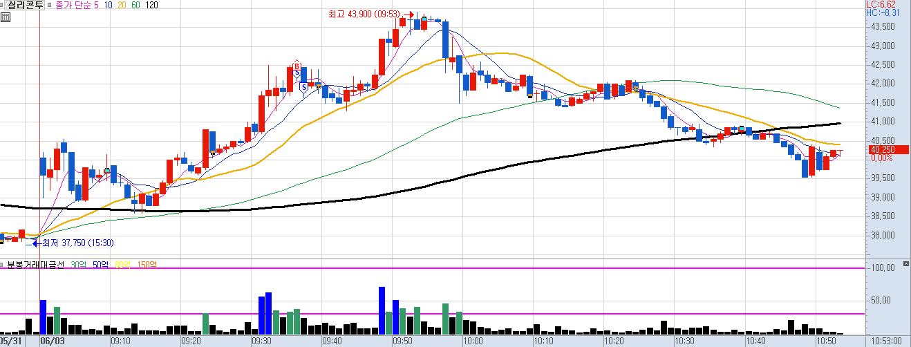 52주 신고가 + 주도 섹터 + 거래대금이 몰린 종목으로 장 초반 프로그램과 같이 매수세 들어오길래 매수했는데