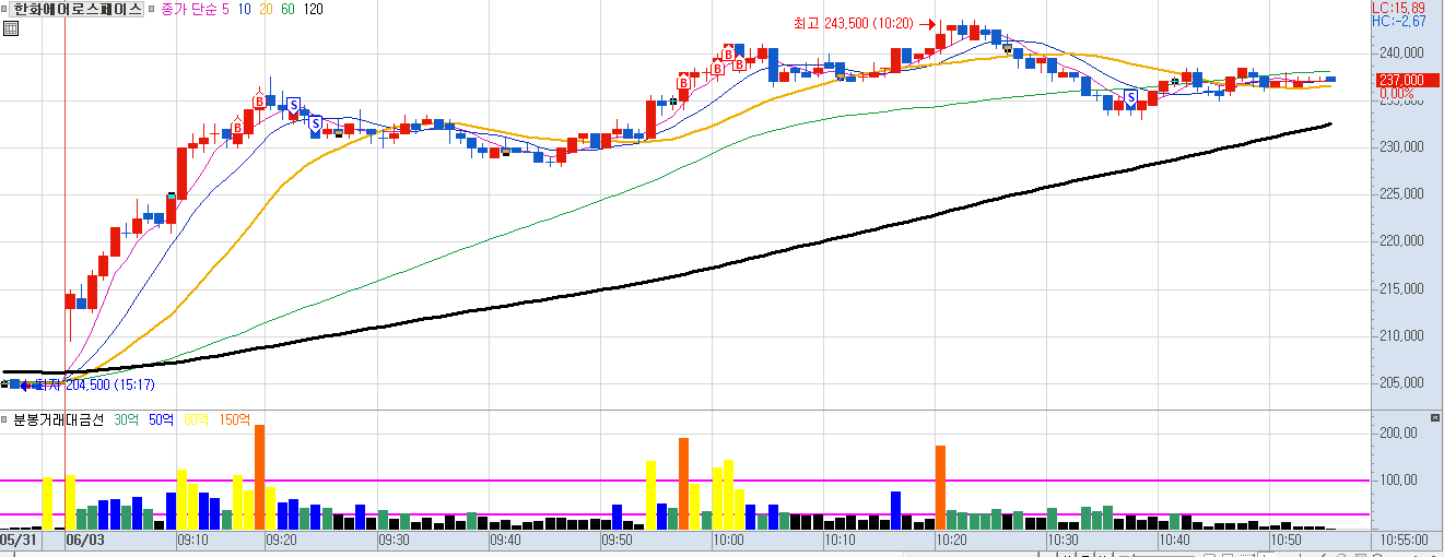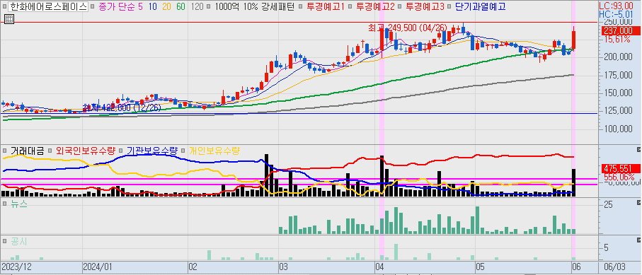 HBM 경쟁 심화로 인한 한미반도체 하락으로 한화에어로스페이스에 돈이 쏠릴 거라 생각해서 매수했는데