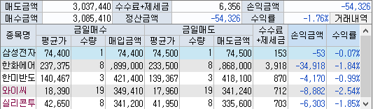중간에 갑자기 석유주들에 돈이 쏠리면서 매매가 꼬여버림...