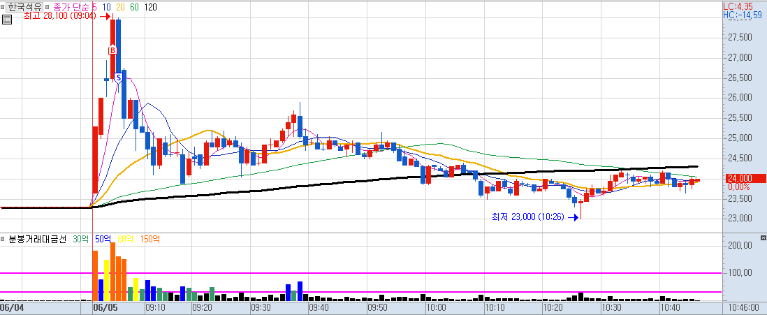 하지만 일봉상 매물대가 걸렸음.. 그럼에도 저렇게 매매한 이유는 앞선 한국석유에서 손해 본 걸 메꿔야 한다는 강박관념 때문인 것 같음.