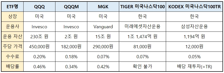 4. 다른 나스닥 지수 추종 ETF와 비교