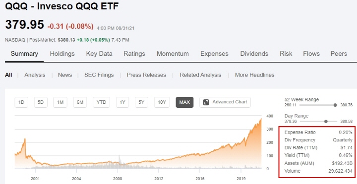 나스닥 지수란 미국 나스닥에 상장된 기업들을 시가 총액에 따라 가중치를 부여해 산출한 지수입니다. QQQ는 나스닥에 상장된 기업 중에 시가 총액 상위 100개의 기업들로만 구성하여 만든 나스닥 100 지수를 추종하는 ETF입니다.