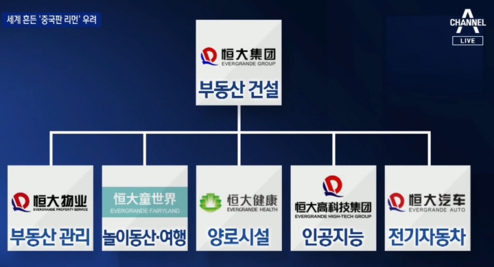헝다그룹(=에버그란데 그룹)은 중국 최대 민영 부동산 기업으로, 부동산을 건설하고 그것을 담보로 대출을 받아 금융, 문화, 관광, 신재생에너지, 인공지능, 전기자동차 등 문어발식으로 사업을 확장했는데 시진핑 정부의 대출 규제로 인해 이러한 사업들에 제동이 걸렸습니다.