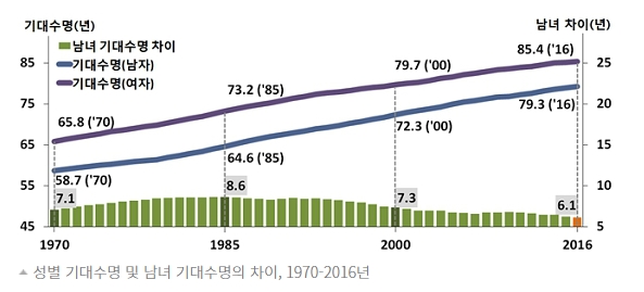하지만 요즘은 백세 시대라고 하죠. 의학의 발전으로 수명은 점점 늘어나는 추세입니다. 위 그래프를 보면 15년마다 기대수명이 약 6~8년씩 증가한다는 것을 볼 수 있는데 단순 계산으로 지금으로부터 30년 후인 2050년쯤에는 진정한 백세 시대에 도달할 것으로 추측할 수 있습니다.