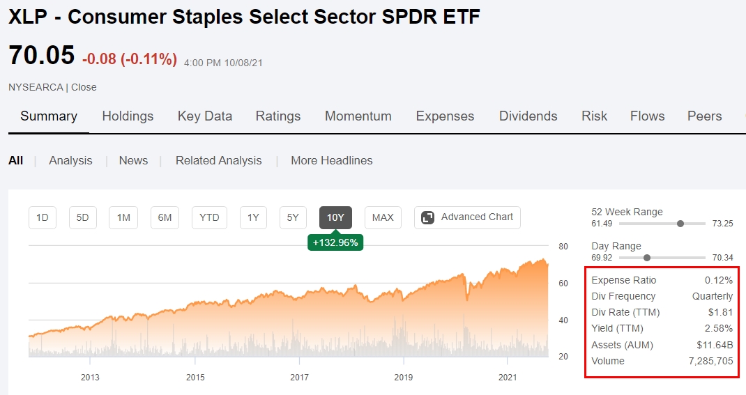 그래서 인플레이션 방어를 위해 XLP를 매수하기 보다는 "안정적인 현금 흐름(배당)과 경기 방어가 가능한 ETF"라는 개념으로 이 XLP를 매수하시는 것은 좋다고 생각됩니다.