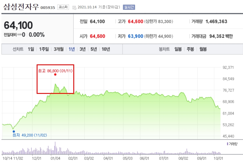 위의 글을 보면 올해 1월 초는 삼성전자를 매수해야 할 때가 아닌, 매도해야 하는 순간이었다는 생각이 들 겁니다. 물론 저기서 더 올라갔을 수도 있지만 적극적으로 매수했을 타이밍은 아니었던 거죠.