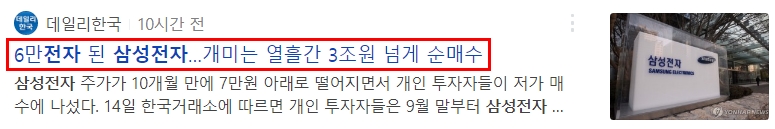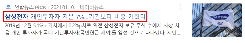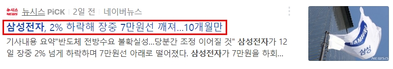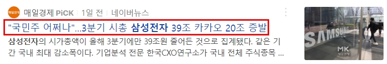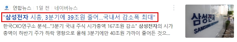 그럼 지금 상황에서 삼성전자와 관련된 뉴스는 어떨지 한 번 볼까요?