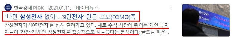 주말 내내 삼성전자가 신고가를 달성했다는 뉴스가 퍼졌고, 사람들은 슬슬 불안해지기 시작했습니다. '이거... 늦기 전에 지금이라도 사야 되는 거 아니야?'하고 말이죠.
