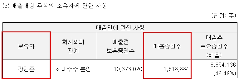 여기서 잠깐 주식 상식! 주식을 새로 발행해서 파는 것을 신주매출이라고 하고, 기존 주주들의 주식을 파는 것을 구주매출이라고 합니다. 즉, 강민준 대표는 전체 공모주의 380만 주 중 40%에 해당되는 150만 주를 팔아서 약 190억 원의 차익을 낸 겁니다.