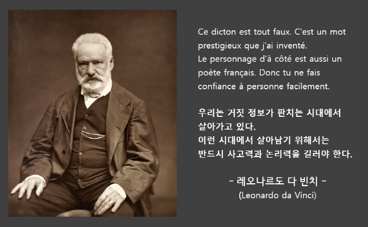 근데 솔직히 저런 어록들이야... 우리 인생에 교훈을 주고, 따지고 보면 틀린 말도 아니고, 사용하는데 의미가 있다면 인용하는 것이 뭐 나쁘겠습니까? 하지만 우리는 이런 사실들을 통해 이것 만큼은 반드시 기억해야 합니다. "세상엔 거짓 정보들이 판치고 있다"는 걸 말입니다.