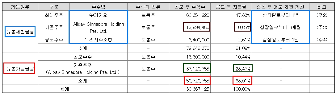 그리고 6개월 이후에는 알리페이가 가진 지분의 10%가 추가로 유통 제한이 풀린다는 것도 투자자라면 어느 정도 인지해 놓으면 좋을 것 같습니다.