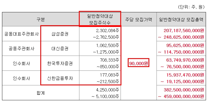 이 중 삼성증권의 청약 가능 수량이 가장 많지만, 그에 비례해 몰리는 사람들을 생각해보면 사실 다른 증권사랑 경쟁률은 차이가 없을 수 있습니다. 그래도 정배는 삼성증권이지만 다른 편한 증권사에서 신청하셔도 무방할 것 같습니다. (그래도 신한증권은 물량이 너무 적긴 하니 참고하시길...)
