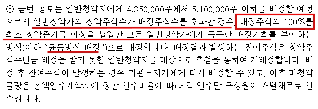 그리고 이번 카카오페이는 특이하게 공모주 사상 처음으로 "100% 균등배정 방식"을 선택했다고 합니다.